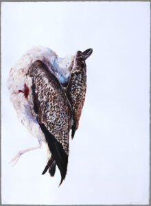 Hoagland: I’m originally from North Carolina and right before I left to go to grad school I saw an exhibition at the Turchin Center for the Visual Arts that was titled Memento Mori. I mention it because it was also about death and this idea that it’s inevitable. It was a bunch of carcasses, but it was photography, so it was gruesome in that idea of looking at [the animals] but it reminded me of your work because you paint it in a way that’s, at least for me, easier to digest. Death is a difficult topic to discuss and bring together visually but it’s still that same idea of making it familiar if that makes sense.