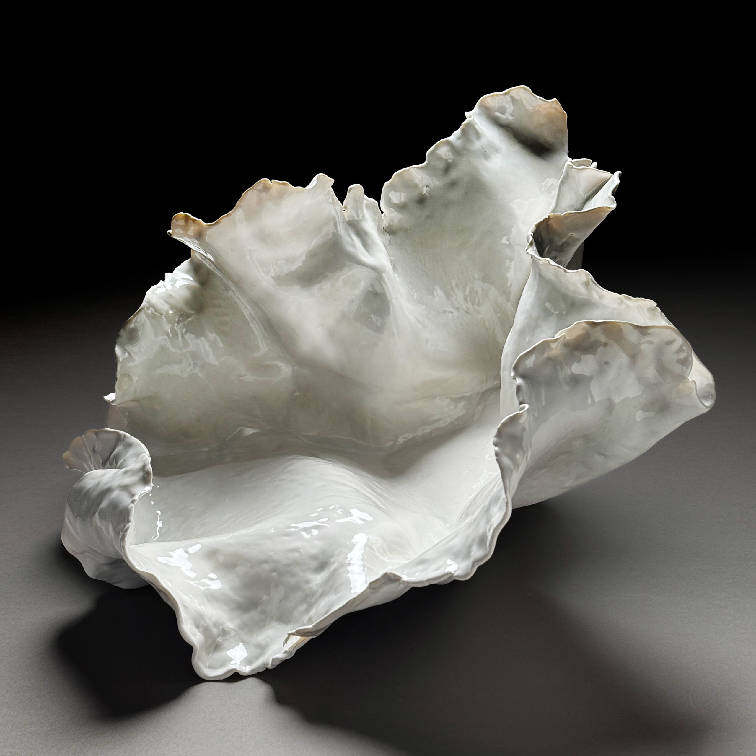 Hand-formed porcelain sculpture finished in high gloss white glaze.