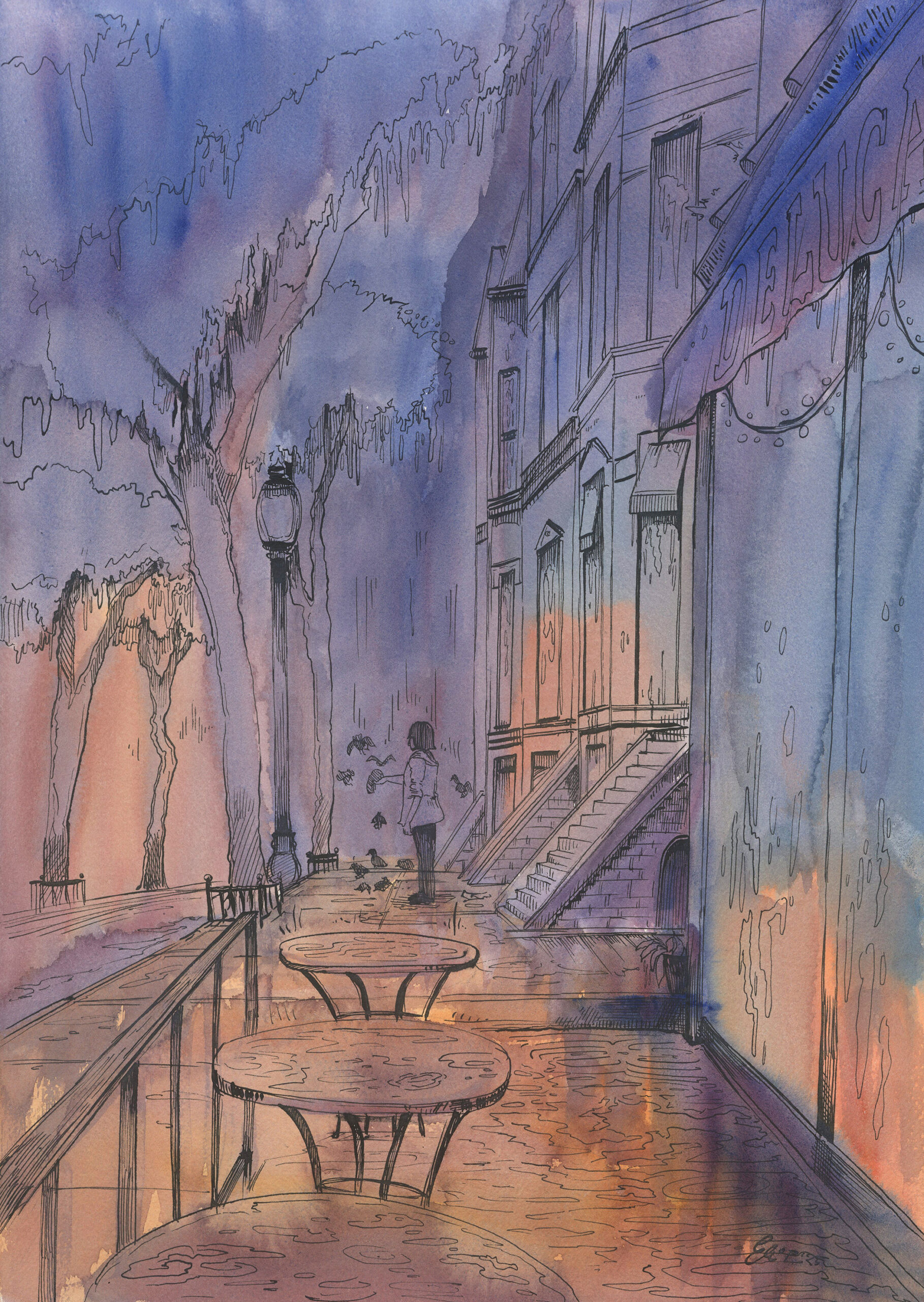 Medium: pen and ink, watercolor on paper