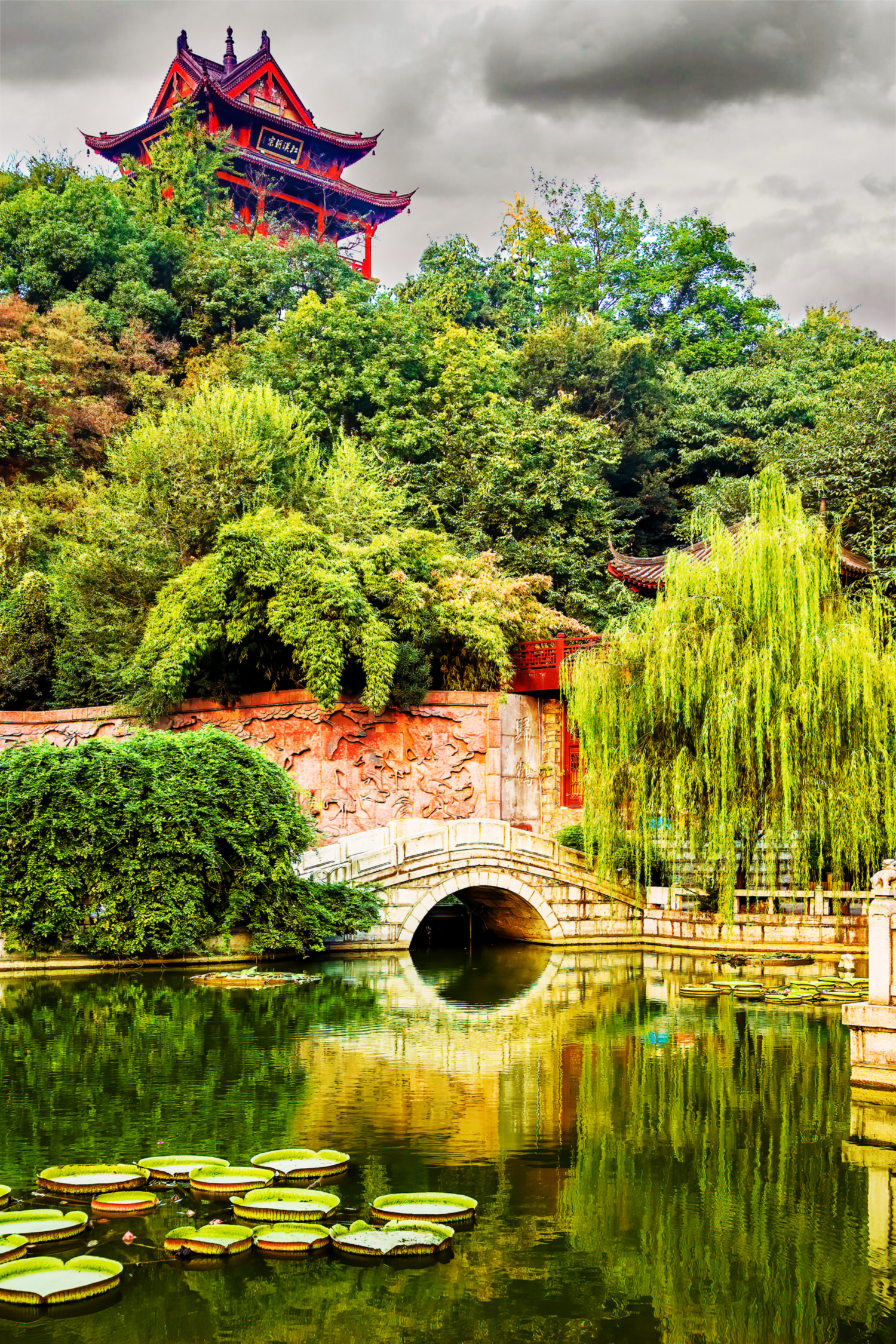 The Yellow Crane Tower is one of Wuhan, China’s most famous landmarks. This was shot from the other side of Goose Pond.