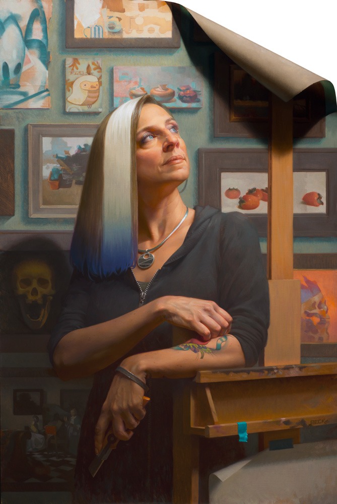 My paintings are representational in nature, but often surreal in composition and design. They are both familiar and unexpected. While grounded in reality using both scale and tromp l'oeil realism, I play with the viewers experience of both the two dimensional plan of the painting surface and three dimensional space it implies. I intend for each viewer to have an individual experience that evolves over the time. The longer you look, the more unfolds.