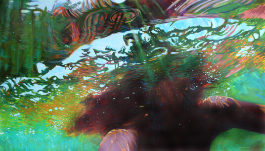 Kat O'Connor revels in the idea that water replaces the traditional model's pedestal. Gravity is removed, and the figure can be viewed at unusual angles. Foreshortening of the figure becomes common, hands and feet moving forward, no longer encumbered by the need to support the weight of the body.