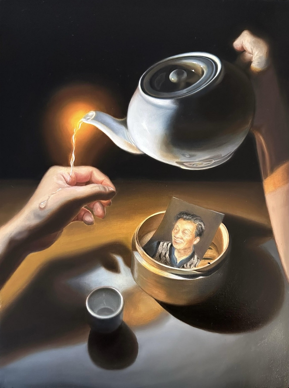 Lucy Yan switched careers from engineering to full time oil painting following the death of her artist grandfather (爷爷). Engaging classical realism and impressionism techniques, she reveals intimate contemplations with viewers: grief, queer love, a cow’s purpose…