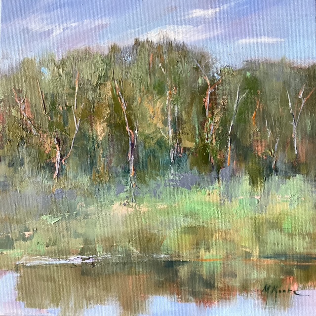 Marguerite Moore is an oil painter living on the South Shore of Boston, MA. Her painting subjects consist of New England elements including seascapes, marshland, boats and blooms. She was awarded Copley Artist status and as a Juried Artist Member in Fine Arts at the Cape Cod Art Center. She has been an art educator, working in public and private institutions. Her paintings stress a sense of time place and perspective. She fractures the image with the the application of paint using a palette knife.