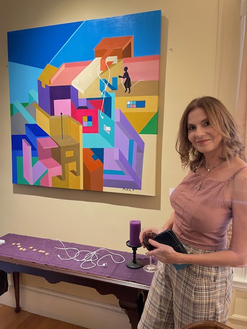 Boston-based artist Matie K (Matie Kestenberg) creates hard-edge geometric abstractions where architecture meets emotion. Her work is defined by bold colors, sharp lines, and unapologetic optimism, an invitation to find meaning within order and sometimes chaos.